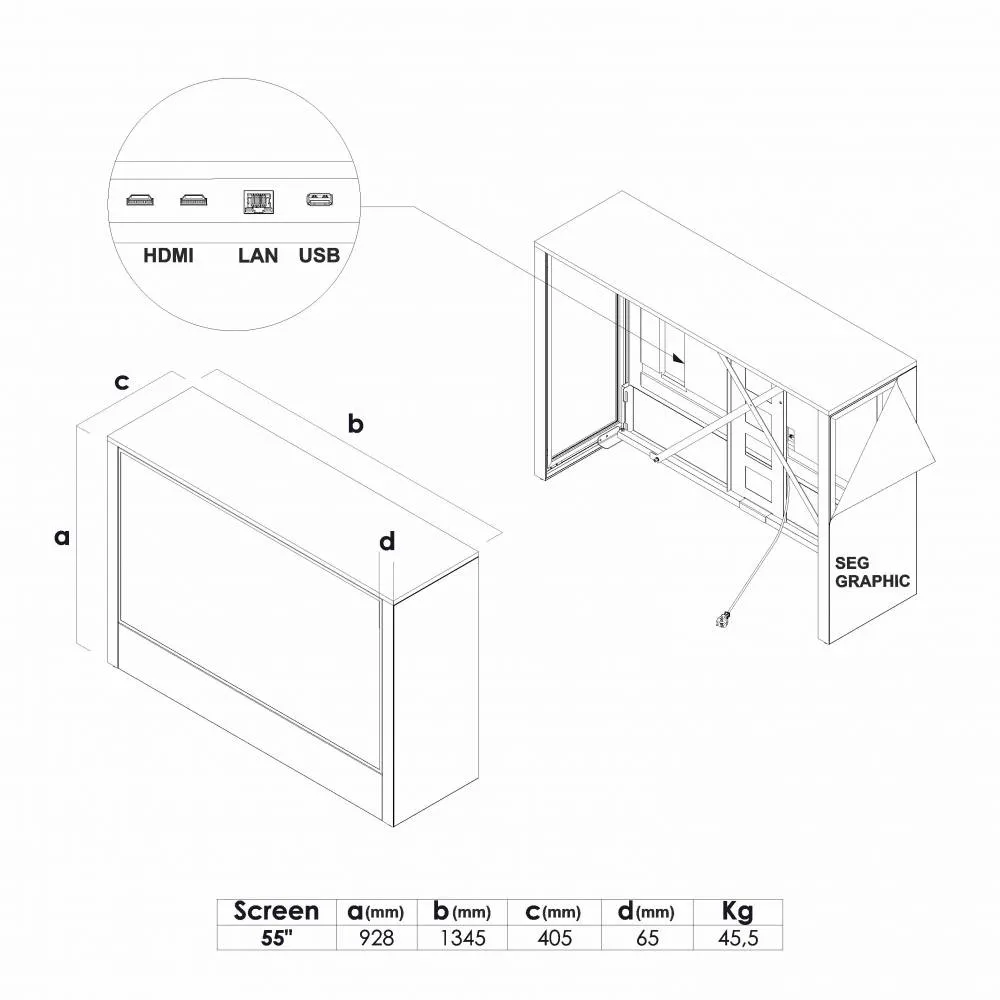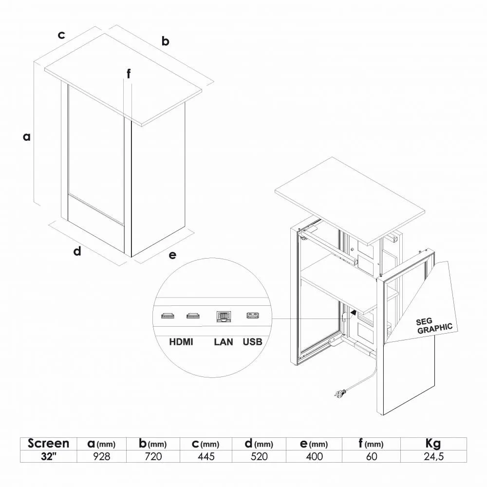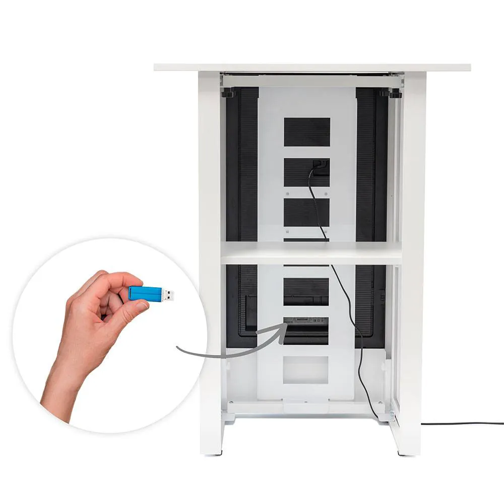 Digitálny promostolík EVO s obrazovkou 32" alebo 55" a orientáciou na výšku alebo na šírku. Čierne alebo biele prevedenie, s plug & play prehrávaním a úložným priestorom vo vnútri stolíka.