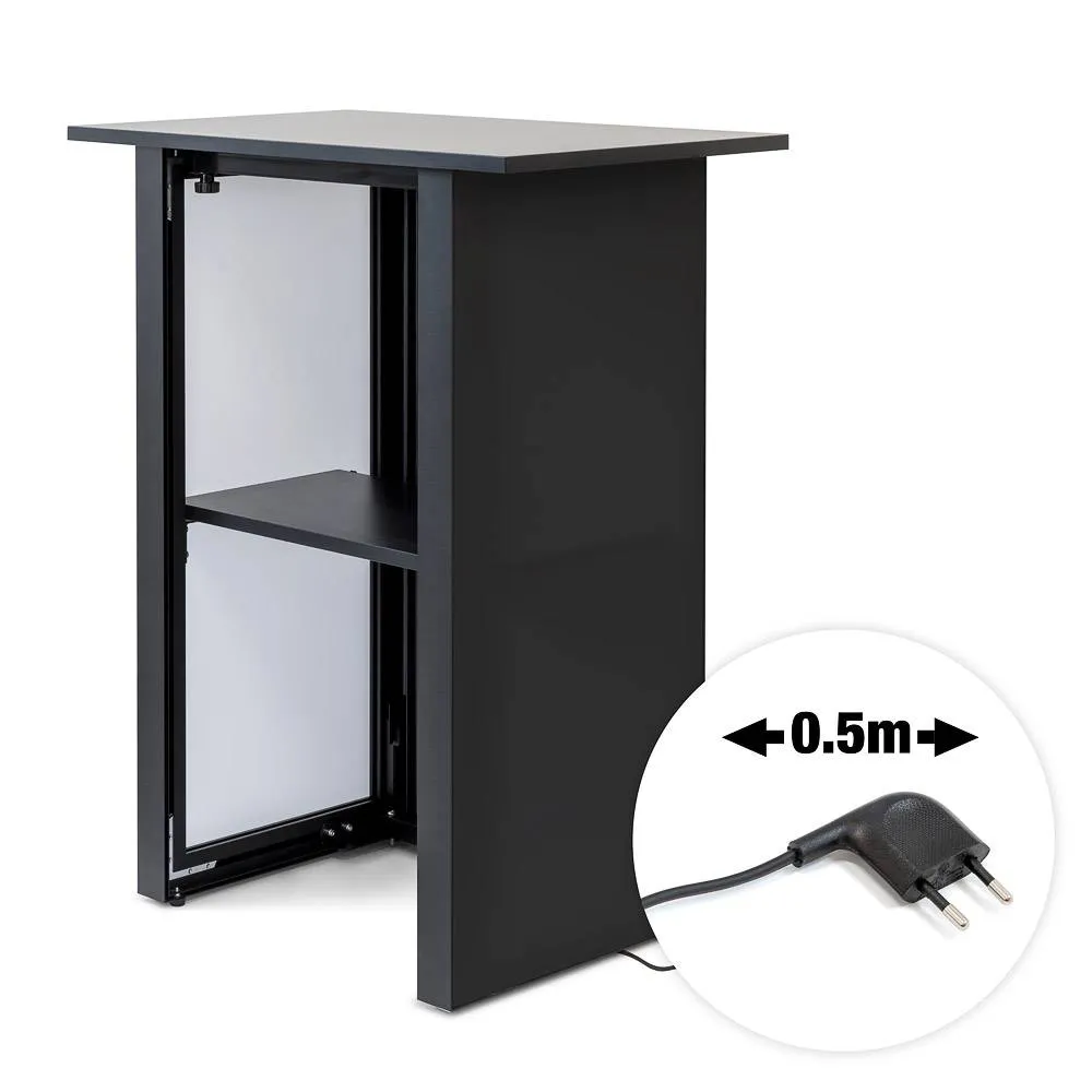 Jednostranný digitálny promostolík pre interiérové použitie. Základné prevedenie s čiernymi bočnými textíliami, možnosť vlastnej potlače.